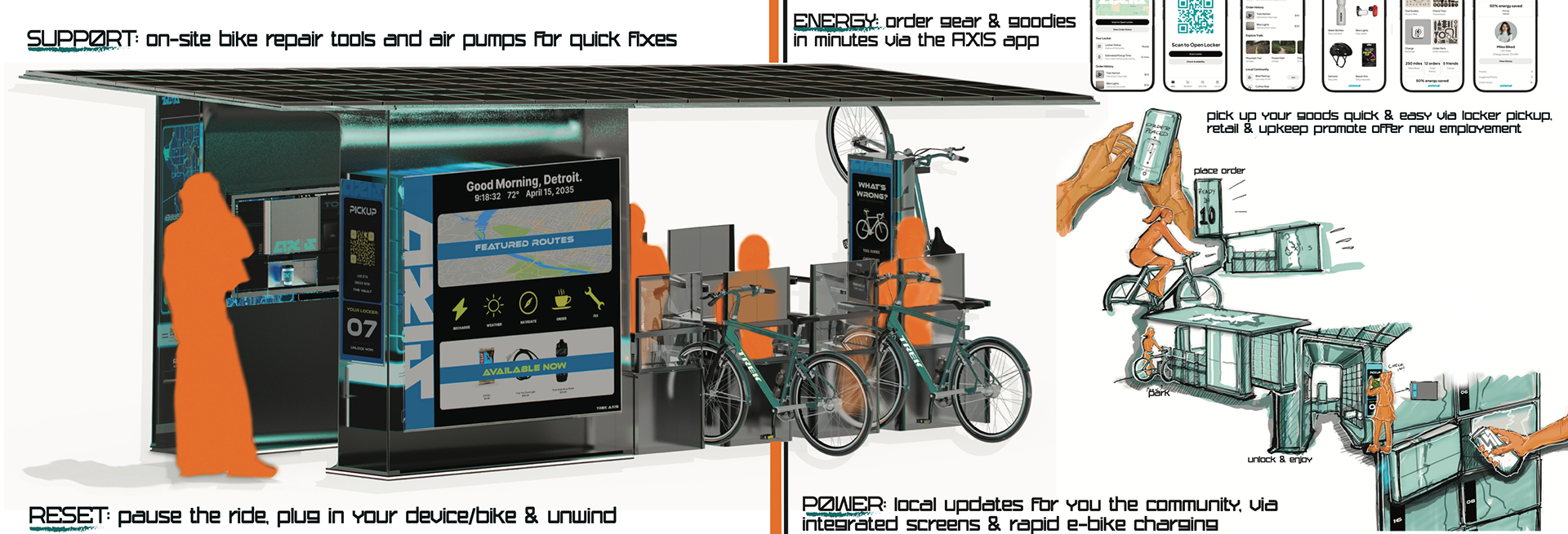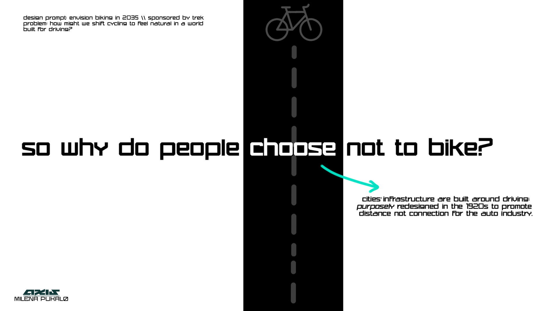 envision biking in 2035- through mobility. I utilized product, ui/ux, urban, and service design elements for this project. it's still in process, over 100 pages of research. check out my process in the lab.